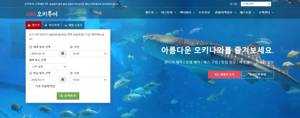 oki tourは、沖縄旅行に特化した旅行予約サイトとして、レンタカーも予約できることから沖縄を訪れる韓国人旅行者に利用されています。