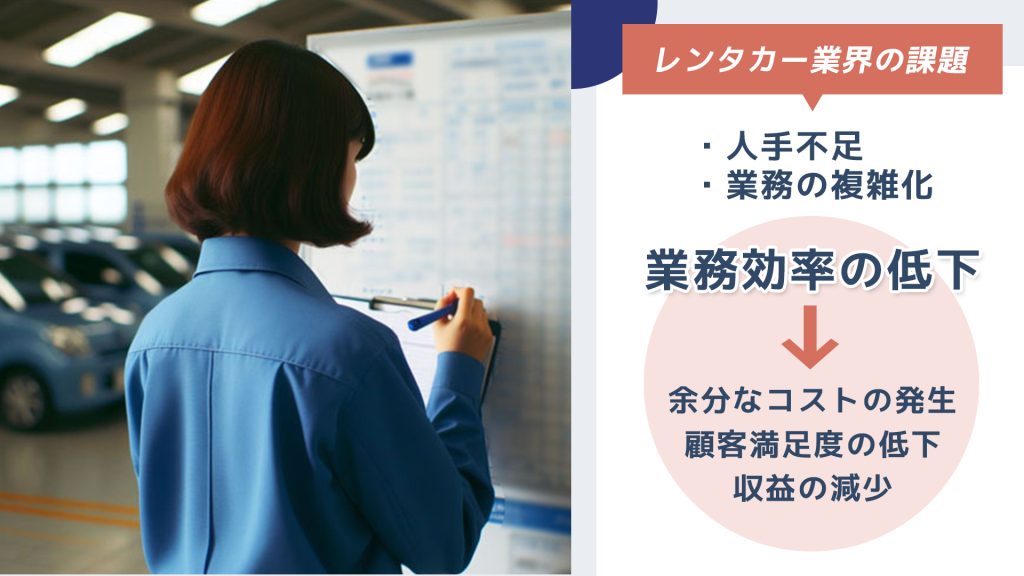 レンタカー業界は現在、人手不足と業務の複雑化による業務の効率の低下という大きな問題に直面しています。特に繁忙期には、レンタカーの予約対応や車両管理、メンテナンス作業に追われるスタッフは多く、効率的な業務遂行が困難となることもしばしばです。これにより、顧客満足度の低下や収益の減少といった悪循環が発生してしまうリスクが高まっています。